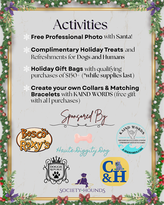 - Complimentary Holiday Treats and Refreshments for Dogs and Humans